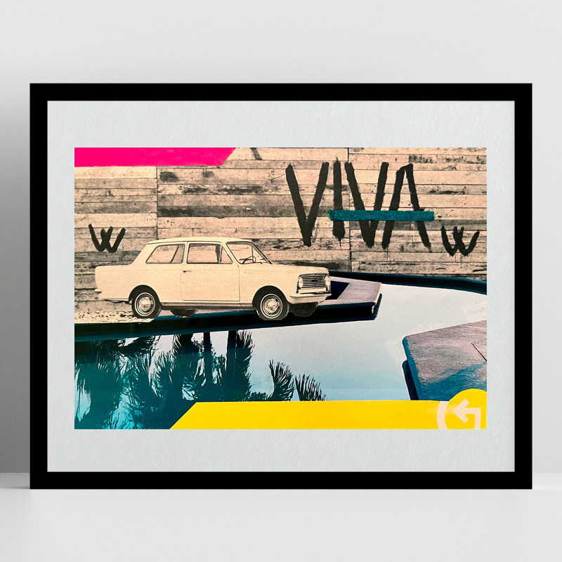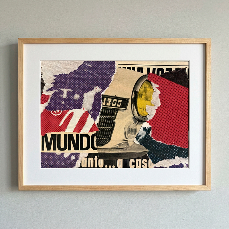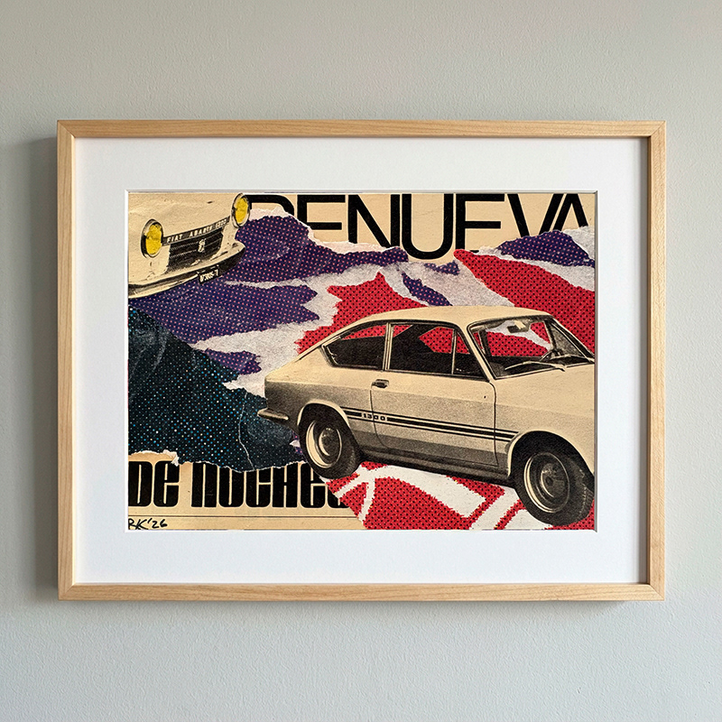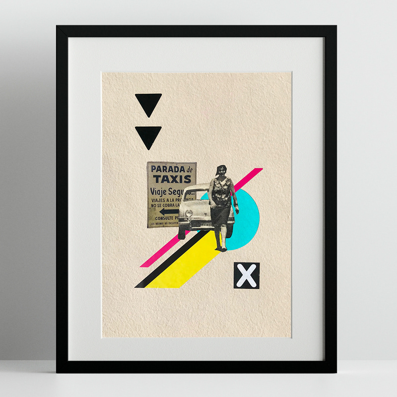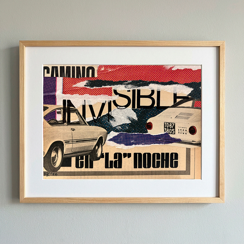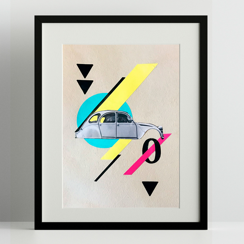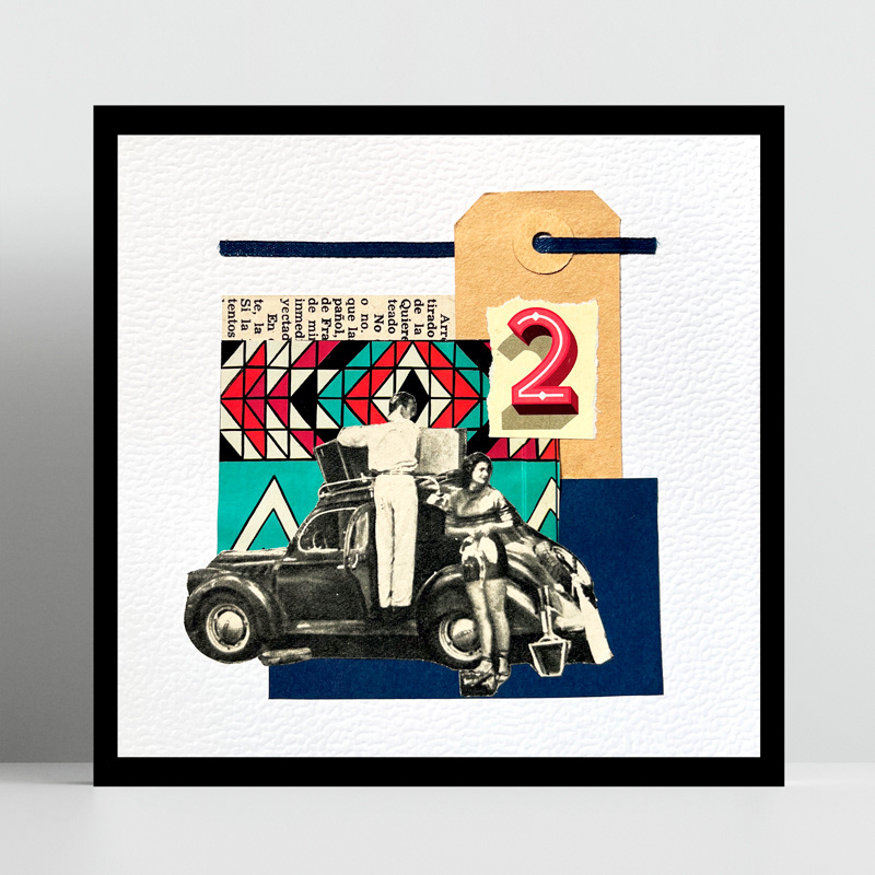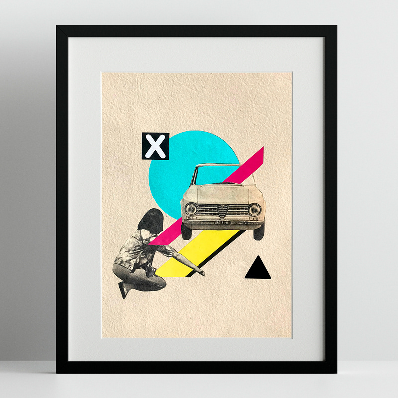 En todas las series busqué experimentar con recortes de papeles, en este caso, en su mayoría imágenes de autos vintage.